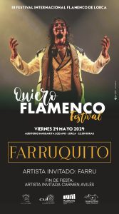 El Festival se celebrará en el auditorio Margarita Lozano de Lorca el 24 de mayo a las 22:00 horas y está prevista la actuación de Farru, Farruquito y la bailaora Carmen Avilés. Este año, el festival contará con la presencia de un artista de renombre internacional como es el bailaor ‘Farruquito’. Juan Manuel Fernández Montoya, conocido como ‘Farruquito’, es el nieto del famoso bailaor flamenco Farruco.