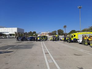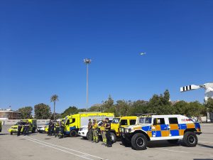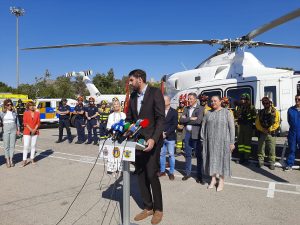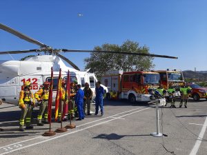 Hasta el lugar de la presentación, el Recinto Ferial del Huerto de la Rueda se desplazaba una unidad helitransportada que desde la pasada semana ocupa la base de emergencias de Zarcilla de Ramos.