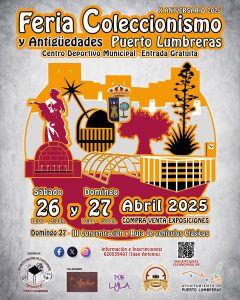 En Centro Deportivo Municipal de Puerto Lumbreras acogerá este sábado en jornada completa e ininterrumpida y domingo hasta las 15 horas una nueva edición de la Feria de Coleccionismo y Antigüedades en la que se podrán ver todo tipo de colecciones y objetos.
