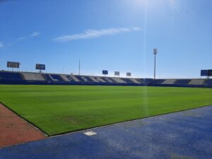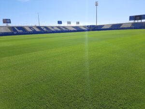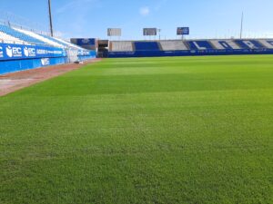 Estado que presentaba el césped del Artes Carrasco este viernes día 24 de octubre a las 11:45 horas.